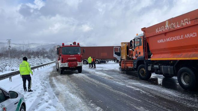 Düzce Emniyet Müdürlüğü Bölge Trafik ekipleri ve Karayolları ekiplerinin yoğun çalışması sonrasında kazaya karışan araçlar vinç ve çekici yardımı ile bulundukları bölgelerden kaldırıldı. Karayolları ekipleri de karla kaplanan yollarda küreme ve tuzlama çalışması yapmasının ardından her iki şeritte trafiğe açıldı.