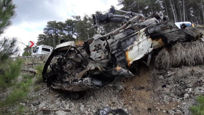 Edinilen bilgiye göre, dün H6876BC plakalı Mercedes marka otomobil, Aynalıkaya mevkisinde kontrolden çıkarak yaklaşık 50 metre yükseklikten uçuruma yuvarlandı. Ormanlık alana düşen otomobil, kısa süre içinde alev aldı. Sürücü ve yolcu araç içinde mahsur kaldı. Otomobilden çıkamayan 2 kişi hayatını kaybetti. Araçtan çıkan yangın, çevredeki ormana da sıçradı. 112 Acil Çağrı Merkezi’ne yapılan ihbar üzerine olay yerine sağlık, jandarma ve itfaiye ekipleri sevk edildi. Çıkan küçük çaplı yan yangın, itfaiye ekipleri tarafından kısa sürede kontrol altına alınarak söndürüldü.