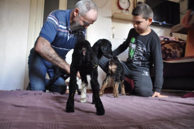 Mangırlar köyünde ikamet eden Öztürk ailesinin yüzü, keçilerinin üçüz doğurmasıyla güldü. Hamile keçi, geçtiğimiz günlerde rahatsızlandı. 10 keçi ve 15 koyunu bulunan Alaaddin Öztürk, keçinin doğumunun başlamasıyla önce birinci yavruyu kucağına aldı. Hayvan ayağa kalkmayınca ikinci doğum da gerçekleşti. İkinci doğumun ardından yine ayağa kalkamayan keçinin karnına dokunan Öztürk, bir yavru daha olduğunu hissetti. Doğumun yaklaşık 5. dakikasında keçi, üçüncü yavrusunu da doğurdu. Öztürk, sağlıklı dünyaya gelen oğlakları üşümemeleri için evine aldı. Sobanın yanında bakılan oğlaklar, annesinden sağılan sütle biberonla besleniyor. Bir hafta boyunca evde bakılacak olan üçüzler, sonra annesine kavuşacak.