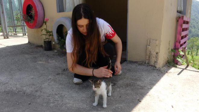 Zonguldak’ın Dilaver Mahallesi'nde yaşanan Merve Nur Demir, harabe olan bekçi kulübesini kendi imkanlarıyla temizleyip boyayarak sokak hayvanlarının barınabileceği alan haline getirdi. Yıllar önce bekçi kulübesi olarak kullanılan alanı temizleyerek boyayan Demir, hayvan severlerden ve yetkilerden destek istedi. Demir konuşmasında, “Bolu Abant İzzet Baysal Beden Eğitimi Öğretmenliği 4. sınıf öğrencisiyim. Benim bir dersim vardı Toplu Hizmet Uygulaması dersim. Yetimhanede çocuklara ücretsiz ders verecektim ama pandemi nedeniyle okullar açık olamadığı için maalesef yapamadım. Ben de sessiz dostlarımız için bir şeyler yapmak istedim. Bu gördüğünüz alan harabe bir alandı. Hiç kimse pis olduğu için yaklaşmıyordu. Ben hem görünüş açısından hem de herkesin kullanabileceği ve hayvanları besleyebileceği bir alan oluşturmak istedim. Pandemi sürecinde herkes evine kapandığı için sadece evinin önündeki hayvanları besleyebiliyorlar. Ben de halkımız sadece atık yemeklerini ya da kuru mama alabiliyorlarsa onu istiyorum. Burayı mahallemizin sakinleriyle tamamen kendi imkanlarımızla yaptık. Boya yardımı oldu. Lastikleri bir yerlerden topladık. Bu şekilde burayı güzelleştirdik. Burası için daha güzel planlarımız var. Yatma alanlarını daha güzel hale getireceğiz. Pencere ve kapı eksiğimiz var. Bunları bulabilirsek tamamlayacağız. Yetkililerden hiç destek talebinde bulunmadık ama destek olmak isterlerse çok seviniriz. Her şey sokak hayvanlarımız için burada güzel barınabilecekleri bir alan var. Valilikten, belediyeden, hayvan severlerden bizlere destek olabilirlerse çok seviniriz. Burası önceden bekçi kulübesiydi. Ben bu proje için Hacı Hüseyin Demir’e gittim ve projeden bahsettim. Bize burayı tahsis etti. Kendisine destekleri için çok teşekkür ediyorum” şeklinde konuştu.