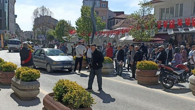 Olay, sabah saatlerinde İzzet Baysal Caddesi’nde meydana geldi. Edinilen bilgiye göre, cadde üzerinde otomobiliyle seyir halinde olan sürücü A.O., iddiaya göre yolun karşısına geçmeye çalışan yaya B.A.’ya yol vermedi. Sürücü ve yaya arasında tartışma çıktı. Tartışma sırasında yaya, sürücünün kendisine silah gösterdiğini iddia etti. Otomobilin önünden çekilmeyen yaya, durumu polise haber verdi. Polis ekipleri gelene kadar aracın başında bekleyen B.A, emekli polis olduğu öğrenilen sürücü A.O.’ya, “Yiyorsa çık dışarıya. Bende sendeki gibi silah yok, bir şey yok. Sen bana silah çektin mi, çekmedin mi?” dedi. Sürücü A.O. da karşılık vererek, “Senin amacın burada şov yapmak” dedi. İkili arasında yaşanan tartışma polisin gelmesiyle sonlandı. Sürücü A.O., olay yerine gelen polis ekibine, “Silah çektiğimi iddia ediyor. Silahım var doğrudur ama silah göstermedim. Ben emekli polisim” diye konuştu. Birbirinden şikayetçi olduğunu söyleyen A.O. ve B.A., polis ekipleri tarafından karakola götürüldü. Olayla ilgili inceleme başlatıldı.