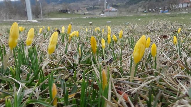 Bolu’nun Mudurnu ilçesinde Çamurluk köyünün dağlık bölgesinde bahar çiçekleri açmaya başladı. Kış mevsiminde açan bahar çiğdemlerinin mor ve sarı renkleri görenleri mest etti. Ortaya güzel görüntülerin çıktığı bölgede köyde yaşayan çocuklar çiçeklerin arasında koşarak eğlendi. 6 yaşındaki Yağmur Kocatonka mor çiğdemleri toplayarak, babasına hediye etti. Minik doğasever, “Hayvanları da çiçekleri de çok severim. Kendi köpeğimde var benden hiç ayrılmaz çok seviyorum” dedi.
