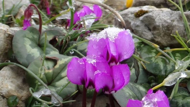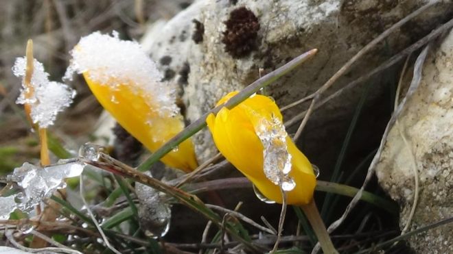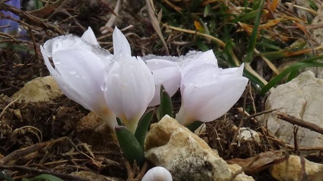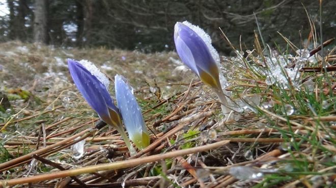 Türkiye'nin gözde turizm alanları arasında bulunan Abant Gölü Milli Parkı, dört mevsim ziyaretçilerini ağırlamaya devam ediyor. Dün sabah saatlerinde başlayan ve ara ara etkisini sürdüren kar yağışıyla birlikte Abant'ta kar kalınlığı yer yer 5 santimetreye kadar yükseldi. Doğayla iç içe olan Abant'ta, baharın müjdecisi çiğdemler de rengarenk çiçek açtı. Kar kütlelerinin arasından açan çiğdemler renkli görüntülere sahne oldu.