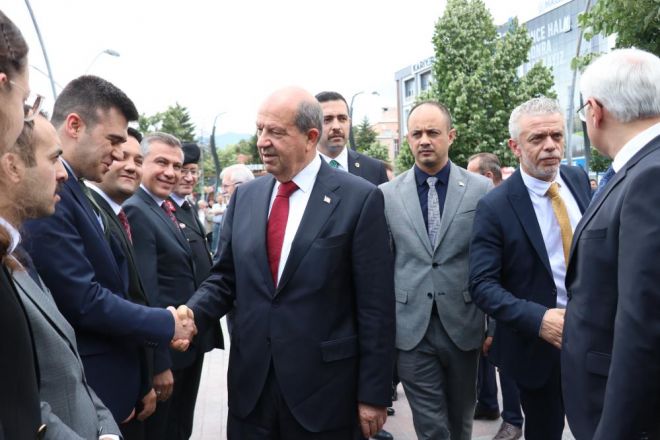 Bolu’da bir dizi ziyaretler ve etkinliklere katılmak için Kuzey Kıbrıs Türk Cumhuriyeti (KKTC) Cumhurbaşkanı Ersin Tatar Bolu’ya geldi. Bolu’ya giriş yapan Başkan Tatar’ın ilk durağı Bolu Valiliği oldu. Bolu Valiliği önünde Ersin Tatar’ı bekleyen il protokolü, Tatar’ı karşıladı. Valilik önüne gelen Cumhurbaşkanı Tatar’a yöresel kıyafet giyen gençler tarafından hediyeleri takdim edildi. Daha sonrasında protokolü tek tek selamlayarak ilerleyen Cumhurbaşkanı Tatar, karşılama mangasını selamladı. Ardından Valilik binasına giriş yapan Cumhurbaşkanı Tatar ve beraberindeki heyet, Bolu Valisi Erkan Kılıç’ın makam odasına girdi. Makam odasında valilik özel defterini imzalayan Tatar, Vali Kılıç ile birlikte sohbet etti. Tatar’ın 2 gün boyunca Bolu’da olacağı öğrenildi.