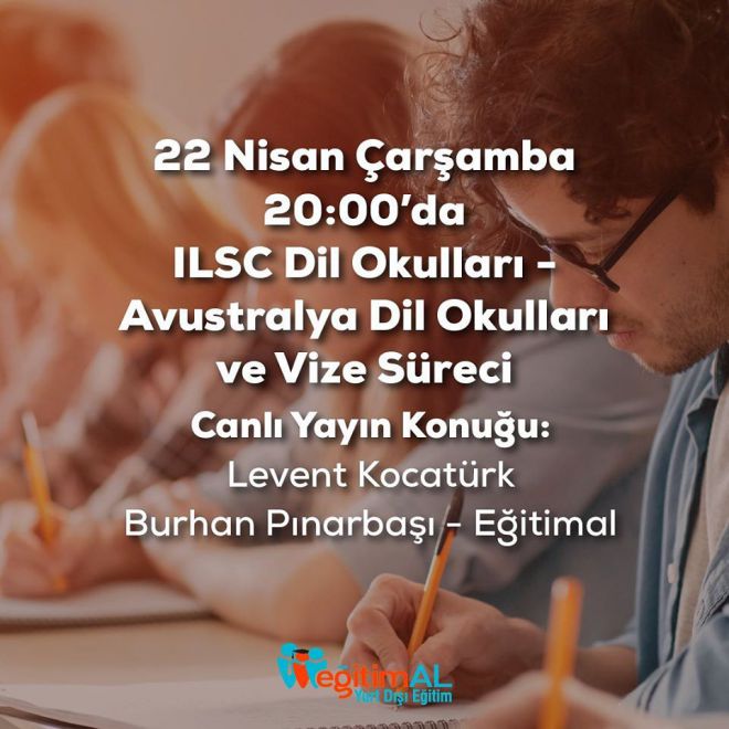 22 Nisan Çarşamba; ILSC Dil Okulları - Avustralya Dil Okulları ve Vize süreci. Konuğumuz Levent Kocatürk, Burhan Pınarbaşı-EgitimAL