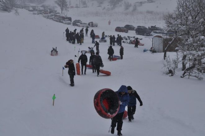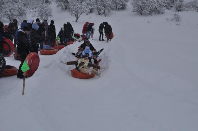 Bolu'nun doğa harikası Abant Gölü Milli Parkı’na gelen vatandaşlar, Örencik Yaylası’nda köylüler tarafından oluşturulan yaklaşık 200 metre uzunluğundaki kayak pistini de ziyaret ederek, karın tadını çıkarıyor. Geçtiğimiz günlerde etkili olan kar yağışı sebebiyle kar kalınlığı 50 santimetrelere kadar ulaşan Örencik Yaylası’nda, köylüler kendi pistlerinde vatandaşları ağırlamaya devam ediyor. Abant Gölü Milli Parkı’na ziyaret için gelen tatilcilerin de ilgi odağı olan pist, Abant’ın vazgeçilmezlerinden biri haline geldi. Köylülerin ekmek kapısı olan kayak pisti, vatandaşlarla dolup taşıyor. Günübirlik tatil için İstanbul’dan gelen bir grup arkadaş, kayak yapmanın eğlenceli olduğunu ifade etti.