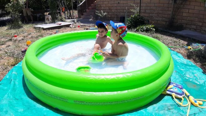 Bolu'nun Mudurnu ilçesine bağlı Yazılar köyünde sıcaklardan bunalan çocuklar ailesinin yardımıyla bahçeye kurulan havuzda serinledi. Ülker ailesinin çocukları 3 yaşındaki Ege ve 4 yaşındaki Rüzgâr, küçük havuzda eğlenceli vakit geçirdi. Doyasıya eğlenen ve serinlemenin keyfini çıkaran çocuklar birbirleriyle su savaşı yaptı. Çocukların annesi Zeynep Ülker, “Denize gidemediğimiz için çocuklarımızı da evimizin bahçesinde almış olduğumuz bu su havuzunda eğlenmelerini sağlıyoruz. Güzel vakit geçiriyorlar” dedi.