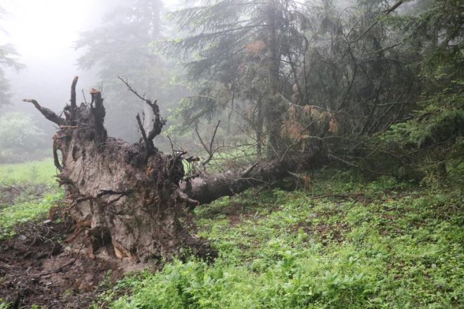Bolu’da hava sıcaklıklarının ani düşüşüyle birlikte yağış ve kuvvetli rüzgar etkili oldu. Kent merkezine 15 kilometre uzaklıkta bulunan Gölcük ve Aladağlar mevkiilerinde bulunan dev ağaçlar kuvvetli rüzgardan etkilendi. Rüzgarın şiddetine dayanamayan ağaçlar köklerinden söküldü. Orman içinde bazı yolları kapatan ağaçların yetkililer tarafından kesimi yapılırken, yıkılan ağaçlarla ilgili tespit çalışması başlatıldı.