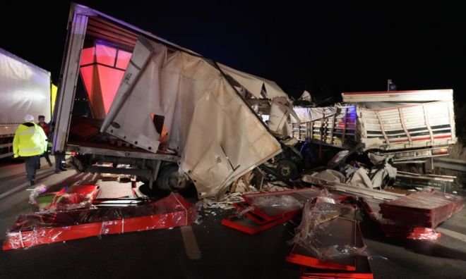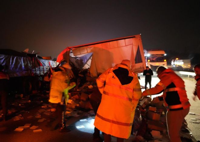 Kaza, Anadolu Otoyolu’nun Bolu geçişinde Doğu gişeleri mevkiinde meydana geldi. Edinilen bilgiye göre, İstanbul istikametinde seyreden Yusuf Y. idaresindeki 06 DDT 803 plakalı tırın ön lastiği patladı. Lastiğinin patladığını fark eden sürücü, aracını emniyet şeridine park ederek gerekli duba önlemini aldı. Aynı istikamette seyreden Salim Ö. yönetimindeki 34 FUC 978 plakalı kamyonet, emniyet şeridindeki lastiği patlayan tırın dorsesine çarptı. Çarpmanın etkisiyle kamyonet otoyolda 2 şeridi kapattı. Meydana gelen kazada kamyonet sürücüsü Salim Ö. yaralandı. Kamyonun kasasında bulunan çeşitli malzemeler yola saçıldı ve otoyol savaş alanına döndü. Durum 112 Acil Çağrı Merkezi’ne bildirildi. İhbar üzerine bölgeye sağlık, polis, itfaiye, jandarma, AFAD ve karayolları ekipleri sevk edildi. 2 şeridin tamamen kapandığı kazanın ardından bölgede uzun araç kuyrukları oluştu. İtfaiye ekipleri tarafından araç içerisinde sıkışan sürücü bulunduğu yerden çıkarıldı. Sağlık ekipleri tarafından olay yerinde ilk müdahalesi yapılan Salim Özcan, hastaneye sevk edildi. Karayolları ekipleri tarafından otoyola saçılan malzemeler temizlendi. Duba önlemini aldığını belirten Yusuf Y., “Arızalıydı aracım. Ön lastik patladı” dedi. Kazayla ilgili soruşturma başlatıldı.