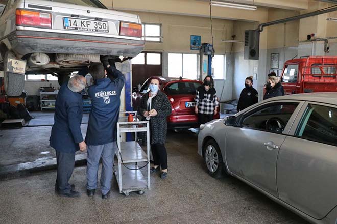 Yaptıkları çalışma hakkında bilgi veren İzzet Baysal Mesleki ve Teknik Anadolu Lisesi Motor bölümü 11’inci sınf öğrencisi Can Aktaş “Motor bölümü olarak kadın hocalarımızın 8 Mart Dünya Kadınlar Günü’nü kutluyoruz. Sağlıklı yaşamaları için araçlarının bakımlarını ücretsiz yapıyoruz. Onlara verebileceğimiz en güzel hediye araçlarının bakımını yapabilmek” diye konuştu.