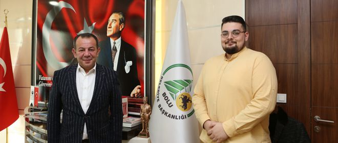 TV8 ekranlarında yayınlanan MasterChef Türkiye yarışmasında sergilediği performansla dikkatleri çeken ancak geçtiğimiz hafta elenerek tüm Bolu’yu üzen Eray Aksungur, bugün Bolu Belediye Başkanı Tanju Özcan’ı makamında ziyaret etti.
