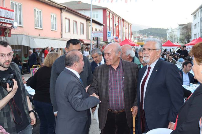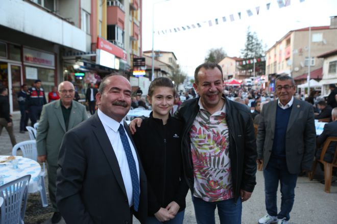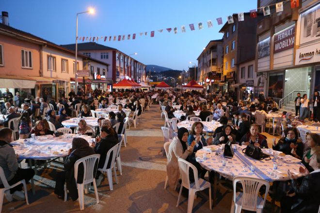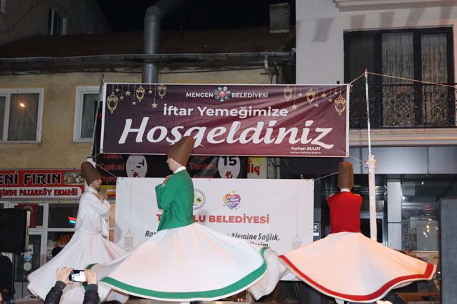 Bolu Belediyesi, Mudurnu ve Göynük’ün ardından dün akşam da Mengen ilçesinde Mengen Belediyesi ile ortak iftar programı düzenledi.Tasavvuf müziği dinletisi eşliğinde gerçekleşen ve Semazen gösterilerinin de yapıldığı Atatürk Caddesi’ndeki iftara Mengen halkı ile il ve ilçe protokol yoğun ilgi gösterdi. Aralarında CHP Zonguldak Milletvekili Deniz Yavuzyılmaz, Bolu Belediye Başkanı Tanju Özcan, Mengen İlçe Kaymakamı Ekrem Ender Ergün, CHP Bolu İl Başkanı Kazım Karsu, Kıbrıscık Belediye Başkanı Emin Tekemen eski Bolu Belediye Başkanı Necdet Gören, İyi Parti Bolu İl Başkanı Ahmet Örnekbaş’ın da bulunduğu yaklaşık 1250 kişi, açık havada hep birlikte oruç açtı.