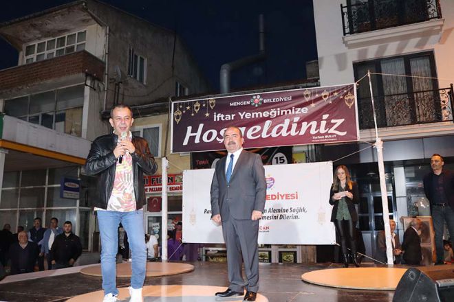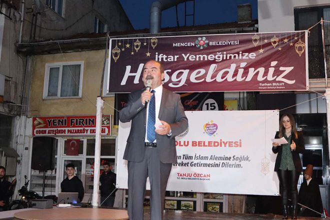 İftarın ardından alanda kurulan platforma çıkan Mengen Belediye Başkanı Turhan Bulut, Bolu Belediye Başkanı Tanju Özcan’ın her zaman Mengen’in yanında olduğunu ve önemli desteklerde bulunduğunu söyleyip, teşekkürlerini sundu ve hediye takdim etti. Bulut’tan hediyesini alan Bolu Belediye Başkanı Tanju Özcan ise Mengen’in kendisi için özel olduğunu belirterek, Mengen ve Mengenlilerin hizmet etmeye devam edeceğini söyledi.