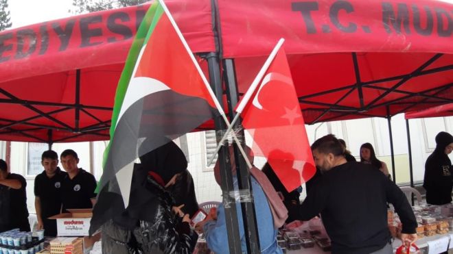 Mudurnu Anadolu İmam Hatip Lisesi’nde öğrenim gören 101 öğrenci, Gazze’de yaşanan insanlık dramına kayıtsız kalmadı. Öğrenciler, okul bahçesinde düzenledikleri yardım etkinliğinde velilerin evlerinde hazırladığı yiyecekleri satışa sundu. Satıştan yaklaşık 70 bin lira para elde edildi. Elde edilen gelir, Gazze’deki ihtiyaç sahiplerine gönderilecek.