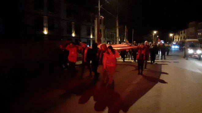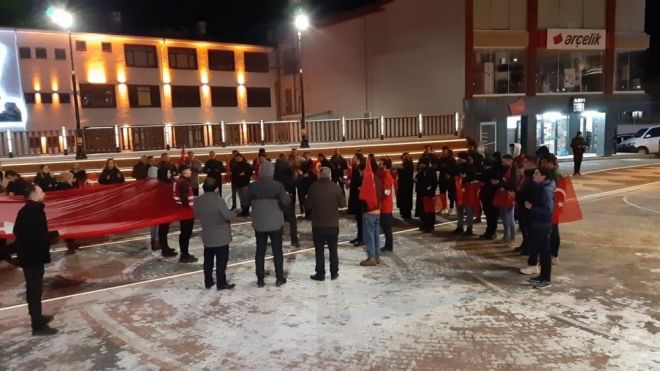 Pençe-Kilit bölgesinde PKK'lı teröristlerce düzenlenen saldırıda şehit olan 9 kahraman asker için Mudurnu ilçesinde vatandaşlar bir araya geldi. Dev Türk bayrağı ile ilçe sokaklarında terörü lanetleyen vatandaşlar, ellerindeki Türk bayraklarını salladı. İstiklal Marşı ile başlayan yürüyüş, şehitler için edilen dua ile sona erdi. Mudurnu Kızılay gönüllüleri tarafından düzenlenen etkinliğe çok sayıda vatandaş katıldı.