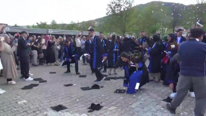 Törenin sonunda öğrenciler, kep atma geleneğini yerine getirerek keplerini havaya fırlattı. Coşkulu anlar, öğrencilerin oyun havaları eşliğinde halay çekmesiyle devam etti.