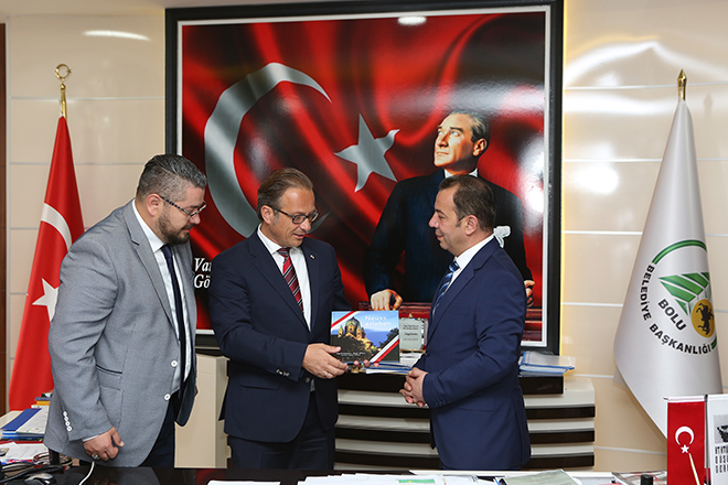 Bolu’da bulunmaktan dolayı büyük mutluk duyduğunu ifade eden konuk Başkan Breuer, “Bolu’yu yeniden görmekten çok mutluyuz. Ve yine seçiminiz de çok fazla olmadı. Hem yeni göreviniz için sizi tebrik etmek, hem de bu yeni görevinizde birlikte neler yapabiliriz diye konuşmak için buradayız. Belediye ve iller olarak birbirimize çok fazla benziyoruz. İkimizin de ili nüfus olarak birbirine çok benzemekte tarih olarak çok benzemekte. Bu fırsatta birbirimize nasıl daha fazla yaklaşabiliriz bunları irdelemek ve bunların üzerinde çalışmak en büyük arzumuz. Devletlerimizin ne yaptığına bakmaksızın biz yerel siyasetçiler olarak birbirimize nasıl yaklaşabilir, halklarımızı daha nasıl yaklaştırabiliriz diye çalışmamız çok önemli. O yüzden dostluğumuzun daha da pekişmesi ve birbirimize daha yakınlaşmamız adına ne yapabilirsek bunları konuşmak benim için çok değerli.” ifadesini kullandı. Neuss Belediye Başkanı Reiner Breuer ve Bolu Belediye Başkanı Tanju Özcan günün anısına karşılıklı hediye takdiminde bulundu.
