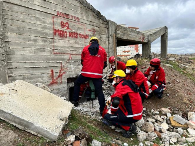 MEB AKUB’un yardımcı koordinatörü öğretmen Cengiz Yılmaz ise eğitimleri anlatarak, “6 Şubat’taki Kahramanmaraş depremi gibi depremlerde daha çok profesyonel ekip sayısını artırmak için bakanlığımızın aldığı bir karar doğrultusunda 81 ilde en az birer tane ekipler kuruldu. Her türlü olaylarda görev almak ve AFAD’a yardımcı olmak için kurulan bir ekibiz. Şuanda bir deprem sırasında yapılan tüm faaliyetler eğitim olarak yapıldı. Tatbikat olarak deprem bölgesinden istek geldi. Onun üzerine harekete geçildi. İlgili deprem bölgesine gidildi. Oradaki kriz masası ile görüşülüp kamp kuruldu. Ondan sonra bize verilen binada canlı arama kurtarma faaliyetleri tatbikatları yapıldı” diye konuştu.