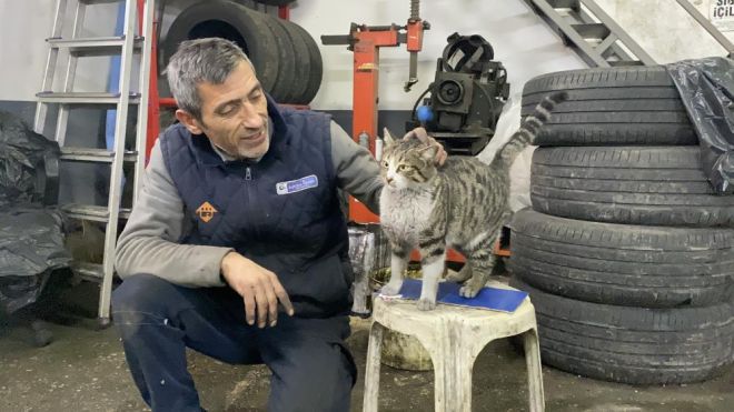 Çalıştığı sırada kedinin yanından ayrılmadığını söyleyen Bodur, "Benim yanımdan ayrılmaz. Canını yakmazsanız size hiçbir şey yapmaz. Biz büyüttüğümüz için kendisi sanayi personeli gibi oldu. Arabalara benimle birlikte gider. Servisimizin daimi elemanı gibi görüyoruz artık" şeklinde konuştu.
