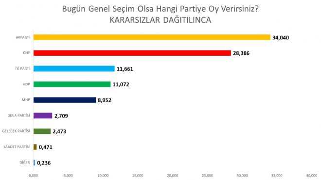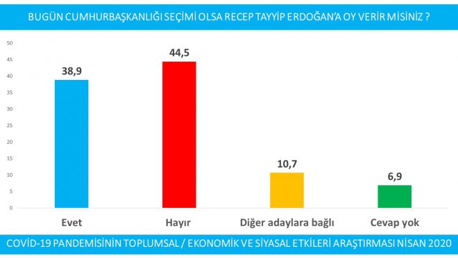 Avrasya Kamuoyu ve Araştırma Şirketi Başkanı Kemal Özkiraz, 'Covid-19 Pandemisinin Toplumsal/Ekonomik ve Siyasal Etkileri Araştırması'nın sonuçlarını açıkladı. Anket sonuçlarına göre bugün seçim olsa MHP yüzde 8,95'le baraj altı kalıyor, AK Parti ise yüzde 34 oy alıyor.