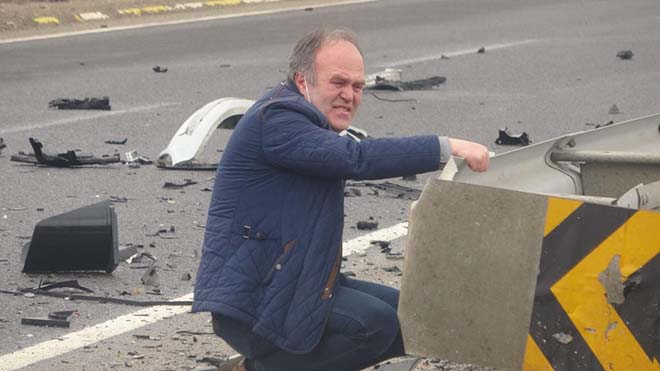 Parçalara ayrılan otomobilden yola fırladı