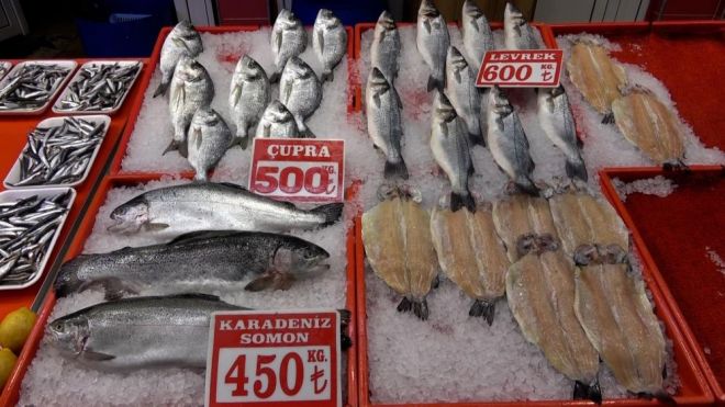 Pazar tezgahlarında kilogram başına hamsi 150 lira, istavrit 200 lira, Karadeniz somon 450 lira, çupra 500 lira ve levrek 600 liradan satışa sunuluyor.