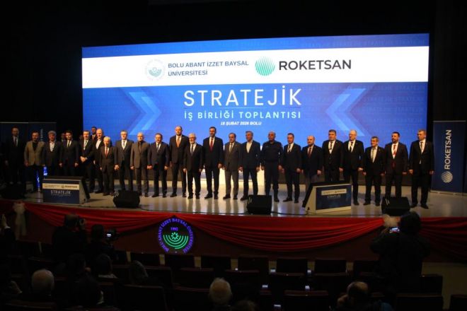 Türkiye’nin savunma sanayisindeki yerlilik oranını artırmak ve sürdürülebilir gelişimi sağlamak amacıyla Bolu’da kritik zirve gerçekleştirildi. ROKETSAN Yönetim Kurulu Başkanı Prof. Dr. Faruk Yiğit’in ev sahipliğinde düzenlenen toplantıda, ROKETSAN Genel Müdürü Murat İkinci ile Bolulu sanayiciler bir araya geldi. Bolu sanayisinin ROKETSAN’a malzeme tedariki ve ortak üretim süreçlerine dahil olması masaya yatırıldı. ROKETSAN’ın üretimini yaptığı füze ve roket maketleri sergilendi.