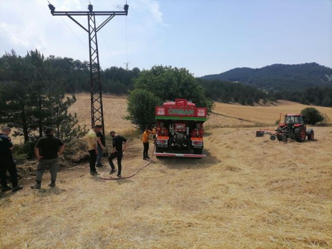 Yangın, Mudurnu ilçesinde Dolayüz köyünde meydana geldi. Edinilen bilgiye göre, arpa ekili tarla biçildikten sonra bölgede rüzgar şiddetini artırdı. Rüzgar nedeniyle oluşan hortumda arpa sapları uçuşmaya başladı. Uçan saplar elektrik tellerine değdi. Trafodan çıkan kıvılcımlar yere düşerek otluk arazide yangına neden oldu. Vatandaşların fark etmesi üzerine bölgeye Orman Bölge Müdürlüğü’ne bağlı arazözler sevk edildi. Kısa sürede müdahale edilen yangın büyümeden söndürüldü.
