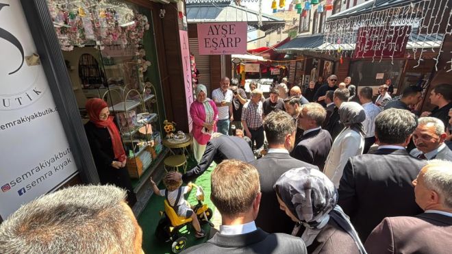 Sağlık Bakanı Kemal Memişoğlu bugün Bolu’yu ziyaret etti. İlk olarak Bolu Valiliği’ne gelen Bakan Memişoğlu’nu, Bolu protokolü karşıladı. Cuma namazının ardından tarihi yukarı çarşı esnafını gezen Bakan Memişoğlu, arkasındaki heyetle birlikte vatandaşlarla sohbet etti. Şehirdeki hastaneleri ziyaret eden Bakan Kemal Memişoğlu, AK Parti binasında partililerle buluştu. AK Parti İl Başkanı Suat Güner ve AK Parti Bolu Milletvekili Yüksel Coşkunyürek’le birlikte konuşma yapan Memişoğlu, Türkiye’nin sağlık sektöründe geldiği seviyeyi anlattı. Türkiye’de yalnızca tek ve çift kişilik, içinde banyo ve tuvalet bulunan hasta yataklarının sayısının 184 bin olduğunu söyleyen Bakan Memişoğlu, 2002 yılı öncesinde bu sayının 10 binin altında olduğu ifade etti.