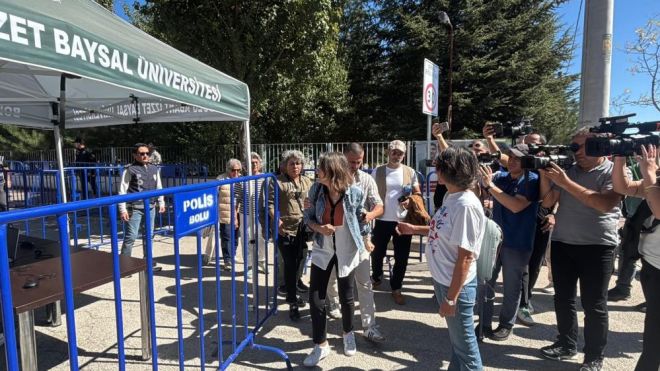 Bolu Sosyal Bilimler Lisesi’nin spor salonunda görülen davanın 2. duruşmasının ikinci gününde, 19’u tutuklu 32 sanık, müştekiler ve taraf avukatları katılıyor. Dün görülen duruşmada sanıklar, davaya, birleşen iddianameyle dahil olan 4 müşteki için savunmalarını yaptı. Davanın bugün görülen duruşmasında birleşen iddianameye ve celse arasında gelen belgelere ilişkin müşteki avukatları beyanları alındıktan sonra tanık beyanlarına geçildi. Bu aşamada sanıkların sergilediği rahat tavırlar ve sanık kürsüsünde verdiği ifadeler salonda tansiyonu yükseltti. Gerginlik üzerine duruşmaya ara verildi. Dışarıda da sinir krizi geçiren aileler feryat etti.