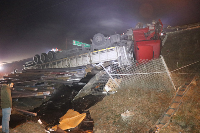 Kaza, saat 22.30 sıralarında TEM Otoyolu Yumrukaya köyü mevkiinde meydana geldi. Edinilen bilgiye göre, Ankara istikametine seyir halinde olan Kadir Altundağ idaresindeki 63 M 3211 plakalı demir yüklü tır, kontrolden çıkarak bariyerlere çarptı. Yaklaşık 50 metre boyunca bariyerleri parçalayarak ilerleyen tır şarampole devrildi. Büyük bir gürültüyle panik halinde evlerinden çıkan köylülerin ihbarı üzerine olay yerine 112 sağlık ve polis ekipleri sevk edildi. Kazada, hurdaya dönen demir yüklü tırdan yara almadan kurtulan tır sürücüsü kendi imkanlarıyla tırdan çıkmayı başardı. Şarampole devrilen tırı ve çevreye yayılan demirleri kaldırmak için çalışma başlatıldı.