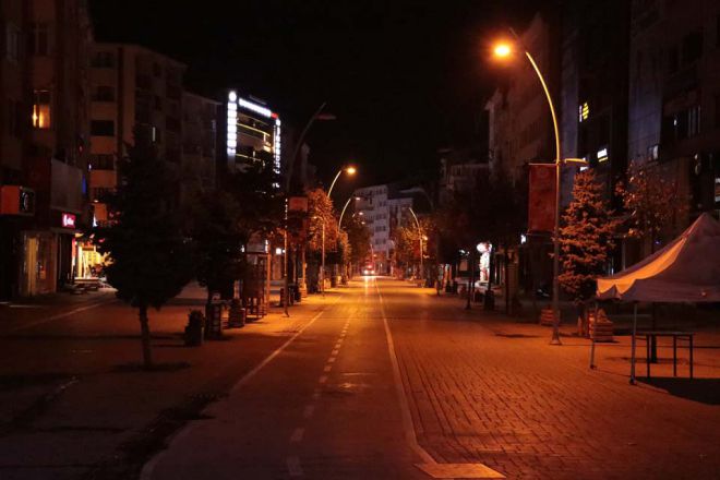 Bolu’da, korona virüs salgını nedeniyle alınan tedbirler kapsamında sokağa çıkma kısıtlamasının uygulandığı saat 20.00 itibariyle kent sessizliğe büründü. Yasağın başlamasına dakikalar kala vatandaşlar evlerine gidebilmek için yoğun çaba gösterdi. İl Emniyet Müdürlüğü’ne bağlı ekipler 10 sabit nokta, mahalle ve işlek caddelerde 93 personelle uygulama başlattı. Ekipler, kısıtlamaya rağmen araçlarıyla dışarıda olan sürücüleri tek tek durdurarak belge kontrolü yaptı. Kentin en işlek yerlerinden birisi olan İzzet Baysal Caddesi’nin kısıtlamanın başlamasıyla birlikte boş kalması havadan görüntülendi.