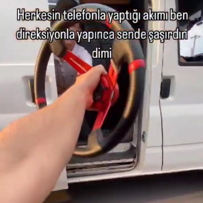 Bolu’da D-100 kara yolunda adeta ölüme davetiye çıkaran B.E. idaresindeki 14 GJ 834 plakalı otomobil, sosyal medyada gündem oldu. Otomobilin sürücüsü B.E., Ankara istikametinde seyir halinde aracının direksiyonunu yerinden çıkardı. Sol şeritte ilerleyen bir başka arkadaşına aracının direksiyonunu vererek yolda ilerlemeye devam etti. O anları cep telefonu kamerasıyla kayda alan B.E., adeta ölüme davetiye çıkardı. Ayrıca şehir merkezinde aracın direksiyonunu elinde sallayarak seyreden sürücü, o anları da arkadaşları tarafından görüntü kaydı altına aldırdı. Görüntülerin sosyal medyada gündem olmasının ardından Bolu İl Emniyet Müdürlüğü Trafik Tescil ve Denetleme Şube Müdürlüğü ekipleri harekete geçti. Ekipler tarafından yapılan çalışmalar sonucunda B.E. otomobiliyle birlikte yakalandı. Otomobili bağlanan şahsa ayrıca para cezası kesildiği öğrenildi.