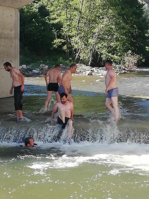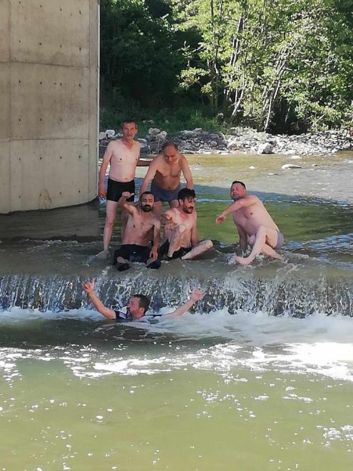 Seben ilçesine bağlı Kabak köyünde, aşırı sıcaklardan bunalan vatandaşlar köyün içinden geçen dereye girdi. Bazı vatandaşların kıyafetleriyle birlikte suya girdiği görüldü. Köprü altındaki su birikintisine dalan vatandaşlar hem eğlendi hem de serinledi. O anlar vatandaş kamerasına yansıdı.