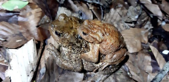 Türkiye'nin doğal güzellikleri arasında yer alan Abant Gölü Milli Parkı, her yıl binlerce turist tarafından ziyaret ediliyor. Bu güzellikler arasında yer alan kurbağalar da, doğal yaşamın bir parçası olarak parkta kendilerine yer buluyor. Gece saatlerinde yavrusunu sırtında taşıyan bir kurbağa kameralara takıldı. Yavrusuyla birlikte Abant Gölü'ne giden kurbağa, renkli görüntüler oluşturdu.