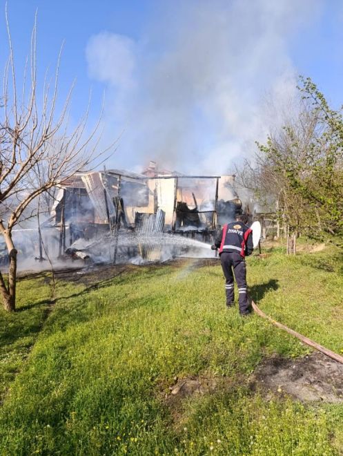 Yangın, sabah saatlerinde Mudurnu ilçesine bağlı Taşkesti beldesi Ilıca köyünde meydana geldi. Ali Özdemir'e ait 2 katlı ahşap evde yanan sobadan sıçrayan kıvılcımlar eşyaları tutuşturdu. Yangın fark eden Ali Özdemir, ailesiyle birlikte evden dışarıya çıkarak durumu 112 Acil Çağrı Merkezi'ne bildirdi. Alevler kısa sürede evi sardı. Olay yerine gelen itfaiye ekipleri yangına müdahale ederek söndürdü. Çıkan yangın sebebiyle 2 katlı ahşap ev küle döndü.