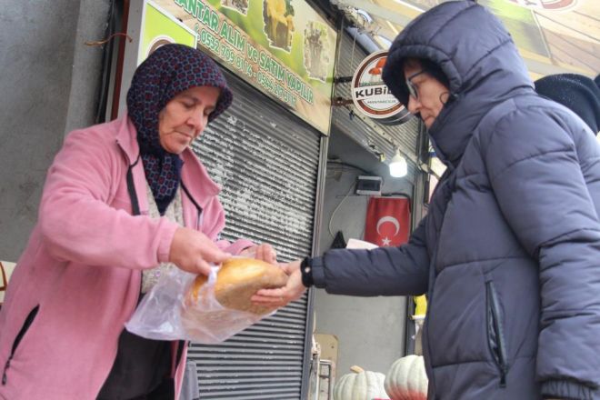 Bolu'da Tepecik Mahallesi'nde yaşayan 66 yaşındaki Nazile Uygur, yaşına rağmen çalışmaya devam ediyor. Uygur, kızı ile oğlunun evde odun ateşinde hazırladığı ekşi mayalı ve patatesli köy ekmeklerini halk pazarına getirerek satıyor. Soğuk hava şartlarına aldırış etmeyen Uygur, sattığı ekmeklerle evin geçimini sağlıyor. Çok sayıdaki vatandaş, köy ekmeği almak için tezgâh önünde sıraya giriyor. Köy ekmeğinin doğal ve sağlıklı olduğunu söyleyen Nazile Uygur, tanesi 50 liradan günde 300 adet köy ekmeği sattığını ifade etti.