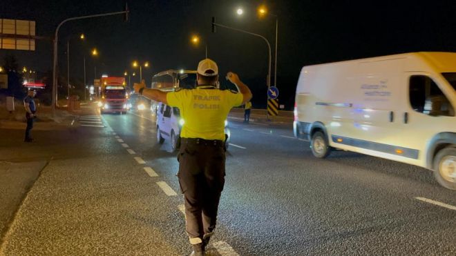 Heyelan riski sebebiyle Anadolu Otoyolu Bolu Dağı Tüneli geçişinde tünel tüpünün 67 metre uzatılması çalışmaları nedeniyle sürücüler D-100 kara yoluna yönlendiriliyor. İstanbul istikametine gitmek isteyen sürücüler, D-100 kara yolunda zaman zaman yoğunluk oluşturuyor. Yoğunluğun oluştuğu Bolu Dağı geçişinde Bolu İl Emniyet Müdürlüğü Trafik Tescil ve Denetleme Şube Müdürlüğü ve Bölge Trafik Müdürlüğü ekiplerinin mesaisi sürüyor. Yolda oluşan uzun araç kuyruklarını akıcı hale getirmek için çalışma yapan ekipler, ışıklı kavşaklarda kontrollü geçiş yapılmasını sağlıyor. Bolu İl Emniyet Müdür Vekili Türker Uygur ile Bölge Trafik Denetleme Şube Müdür vekili Başkomiser Ali Yılmaz ve Trafik Tescil ve Denetleme Şube Müdürlüğü vekili Emniyet Amiri Atilla Erdem gece saatlerinde trafiğin devam ettiği bölgedeki ekiplerin çalışmaların denetledi.