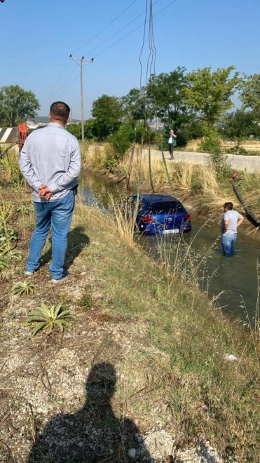 Kanal içerinde kalan araç, sabah saatlerinde vinç yardımıyla bulunduğu yerden kurtarıldı.