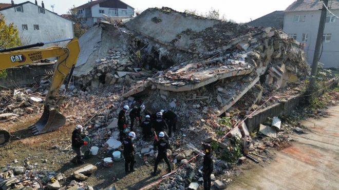 Tatbikat gereği 10 farklı kontrollü yıkım alanında çalışmaların devam ettiğini vurgulayan Vali Arslan, “Şu anda il merkezimizde 4, ilçelerimizde ise 6 adet olmak üzere 10 noktada çalışmalar yapılıyor. Enkazda müdahale canlı yaralı arama faaliyeti 10 farklı sivil toplum kuruluşu veya topluluğumuz tarafından sürdürülüyor. Bu çalışmalar AFAD koordinasyonunda yürütülmekte. Senaryonun devamında Akçakoca ilçemizde artçı sarsıntılar sebebi ile bir bina daha yıkılma olacak. Ona müdahale konusunda çalışmalar olacak” şeklinde konuştu.