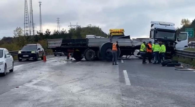 Edinilen bilgiye göre, İstanbul istikametine seyir halindeki malzeme yüklü tır, sürücüsünün direksiyon hakimiyetini kaybetmesi sonucu bariyerlere çarparak yolda makasladı. Bu sırada aynı yönde ilerleyen başka bir tır, makaslayan araca çarptı. Çarpışmanın etkisiyle bir tırın dorsesinde bulunan malzemeler otoyola saçıldı. Kazada tırlardan birinin sürücüsü yaralanırken, olay yerine sağlık, jandarma ve karayolları ekipleri sevk edildi. Yaralı sürücü, sağlık ekiplerinin ilk müdahalesinin ardından hastaneye kaldırıldı. Kaza nedeniyle otoyolda uzun araç kuyrukları oluştu. Ekiplerin yola saçılan malzemeleri kaldırma ve yolu tamamen trafiğe açma çalışmaları sürerken, trafik bir süre iki şeritten kontrollü olarak sağlandı. Kazanın ardından oluşan araç kuyruğu ve ekiplerin çalışmaları havadan dronla görüntülendi.