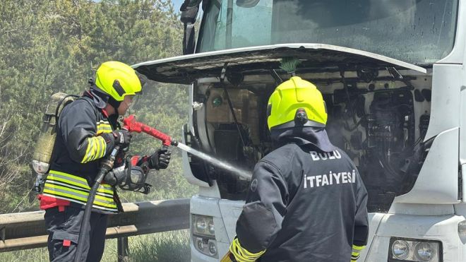 Yangın, TEM Otoyolu’nun Bolu kesiminde bulunan Musluklar köyü mevkiinde meydana geldi. Edinilen bilgiye göre, Hüseyin A. O. idaresindeki 06 ZDD 78 plakalı tır, İstanbul istikametine seyir halindeyken henüz belirlenemeyen bir nedenle motor kısmından dumanlar çıkmaya başladı. Durumu fark eden sürücü, aracı hemen emniyet şeridine çekti. Tır sürücüsünün yardımına yolda seyreden diğer şoförler koştu. Yangın söndürme tüpleriyle ilk müdahalenin yapıldığı araçta alevler kısa sürede kontrol altına alınmaya çalışıldı. İhbar üzerine bölgeye itfaiye ekipleri sevk edildi. Olay yerine ulaşan ekipler tarafından soğutma çalışması yapılarak yangının tamamen söndürülmesi sağlandı. Yangın nedeniyle tırın motor kısmında hasar oluştu.