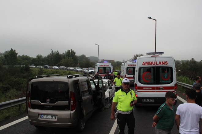 Kaza sabah saatlerinde TEM otoyolu Gölyaka gişeleri bağlantı yolunda meydana geldi. Gölyaka gişelerinden otobana giriş yapan ve Ankara istikametine yönelen İlhan Çolak idaresinde ki 22 HL 361 plakalı hafif ticari araç şerit ihlali yaparak karşı şeritten gelen Gölyaka gişeleri istikametine giden Mehmet Erdem idaresinde ki 34 YJ 8589 plakalı otomobille kafa kafaya çarpıştı. Kazada hafif ticari araç içinde bulunan Fatma Erdem, Elif Erdem, Fatma Bıyık, Yiğit Alp Uzunoğlu, Almina Uzunoğlu, Emel Uzunoğlu, Elif Erdem ile diğer otomobilde bulunan Fatma Çolak yaralandı. Yaralılar 112 acil sağlık ekiplerinin yaptığı ilk müdahalenin ardından Düzce’deki çeşitli hastanelere kaldırılarak tedavi altına alındı. Kazayla ilgili olarak inceleme başlatıldı.