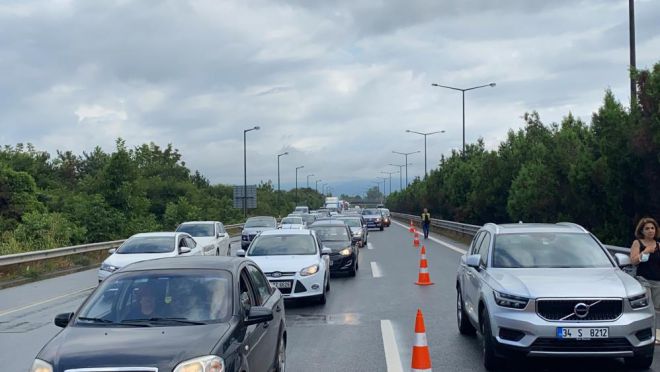 Düzce’de sağanak yağış etkili olmaya devam ediyor. Özellikle TEM Otoyolu Düzce geçişinde etkili olan sağanak, beraberinde kazaları da getirdi. TEM Otoyolu İstanbul istikametinde tır, kamyon, otobüs ve otomobillerin karıştığı 5 ayrı trafik kazası gerçekleşti. İlk kaza TEM otoyolu İstanbul İstikameti Büyük Melen köprüsü üzerinde meydana geldi. 3 aracın çarpıştığı kazanın ardından trafik yavaşladı. Otobüs, kamyon ve otomobillerin çarpıştığı 4 farklı kaza daha meydana geldi. Kazalarda 15 araç birbirine girerken, 12 kişi yaralandı. Yaralılar bölgeye gelen sağlık ekiplerince Düzce ve Sakarya’daki hastanelere kaldırıldı. Kazalar sebebiyle uzun süre tek şeritten sağlanan trafik, araçların kaldırılmasının ardından normal seyrine döndü. Polis ve jandarma ekipleri kazalar ile ilgili inceleme başlattı.