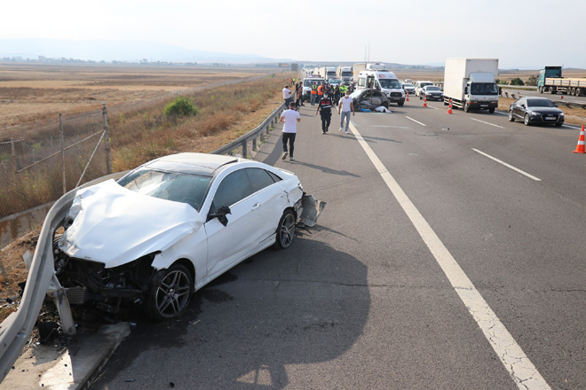 Kazayı gören görgü tanığı sürücü, “Ben 300-400 metre gerideydim. Yolun ortasında lastik gördüm. Sonra Yaris sürücüsü lastiğe çarpmamak için sol şeride hamle yaptı. O esnada Mercedes’te olan vurdu. Ben Yaris’in takla attığını gördüm. Araç yan dönmüştü. Arabayı arkadaşlarla beraber düzelttik. O esnada bayanın cansız bedeniyle karşılaştım. Sonra uzaklaştım” dedi.