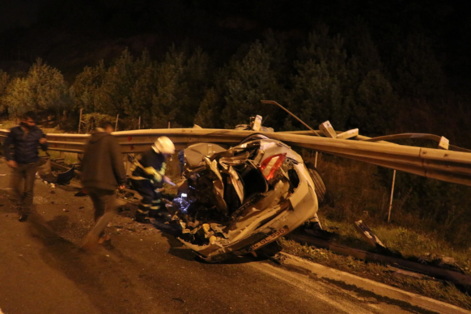 Bariyerlere saplanan otomobilden sağ çıktılar