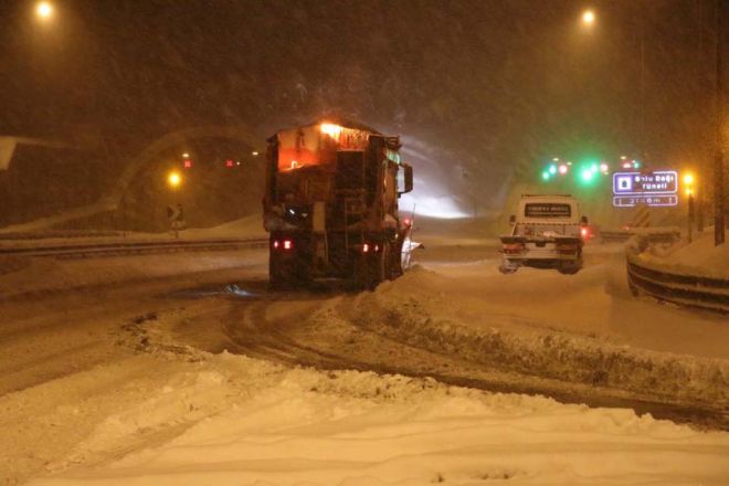 Bolu’da, geçtiğimiz hafta başlayan ve dün saat 21.00 itibariyle şiddetini artırarak aralıksız devam eden kar yağışı TEM Otoyolu ve D-100 Karayolu’nun Bolu Dağı geçişinde etkili oluyor. Kar yağışının zaman zaman tipi ve fırtına şeklinde devam ettiği Bolu Dağı’nda sürücüler güçlükle ilerliyor. Ağır araçların yoğun olarak kullandığı TEM Otoyolu’nda meydana gelen maddi hasarlı kazalar sebebiyle kapanan yol, ekiplerin çalışmalarıyla açılarak normale dönüyor.