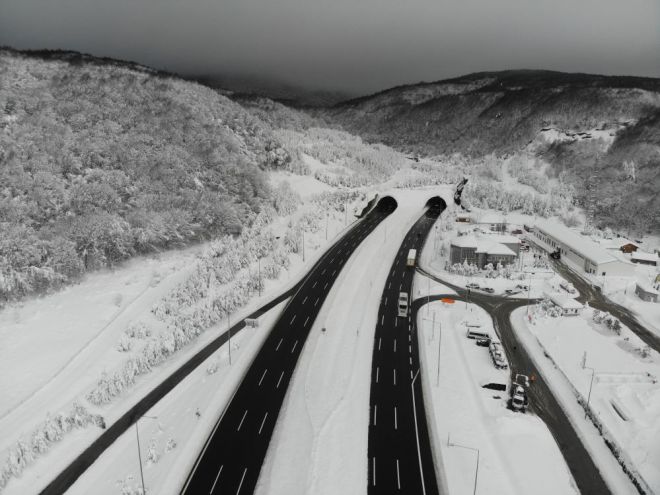 Bolu'da iki gün önce öğle saatlerinde başlayan kar yağışı, TEM Otoyolu'nun Bolu geçişinde trafiği durma noktasına getirmişti. Yeşil alanlardaki kar kalınlığı 75 santimetreyi aştı. Karayolları ekipleri, bölgede aralıksız çalışmalarını sürdürerek yolu açık tutmaya çalıştı. İki gün boyunca aralıklarla trafiğin aksadığı ve maddi hasarlı kazaların meydana geldiği Bolu Dağı Tüneli'nde, kar yağışının etkisini kaybetmesiyle birlikte ulaşım rahatladı. Dronla havadan görüntülenen bölgede, trafik akışının normale döndüğü gözlemlendi.