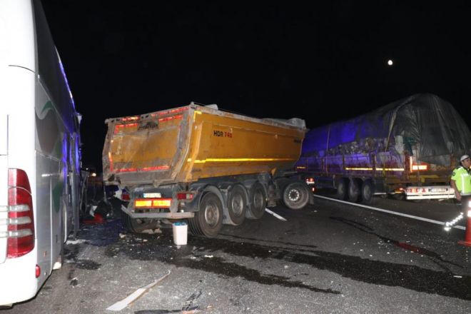 Otobüste bulunan yolcu, “Kaza nedeniyle kafamızı vurduk. Otobüste çocuklar vardı. Bağrışmalar oldu. Tırın makas attığı söyleniyor” dedi.Kazayla ilgili soruşturma başlatıldı.