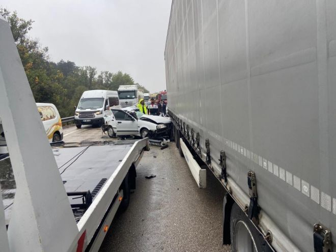 Kaza, K-100 karayolu Gerede ilçesinde meydana geldi. Edinilen bilgiye göre, Karabük istikametinde seyreden J.L. yönetimindeki yabancı plakalı tır, M.K. idaresindeki 34 NV 2995 plakalı hafifi ticari araçla çarpıştı. Bu sırada aynı istikamette ilerleyen H.T'nin kullandığı 59 UB 099 plakalı otomobil de kaza nedeniyle yol kenarında duran tıra arkadan çarptı. Meydana gelen kazada otomobil sürücü H.T. otomobil içerisinde sıkıştı. İhbar üzerine kaza yerine polis, sağlık ve itfaiye ekipleri sevk edildi. Otomobilde sıkışan sürücü, Gerede Belediyesi İtfaiye Müdürlüğü ekiplerinin müdahalesiyle kurtarıldı. Kazada ağır yaralanan otomobil sürücüsü, ambulansla Gerede Devlet Hastanesine kaldırıldı. Kazayla ilgili inceleme başlatıldı.
